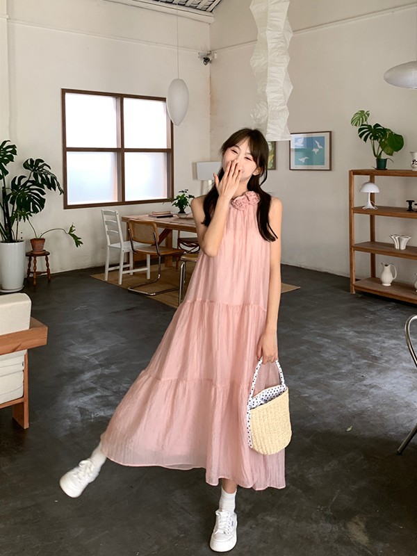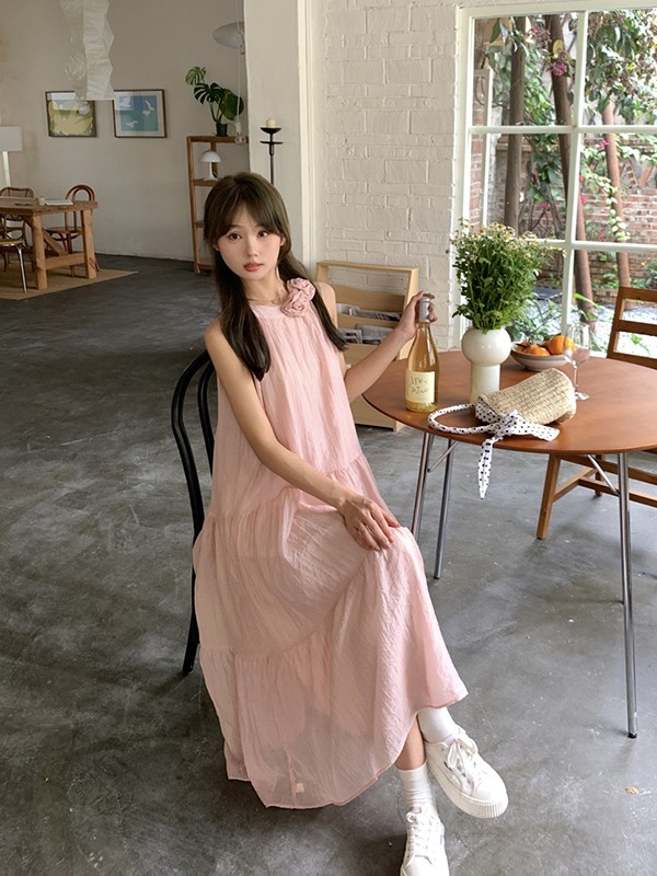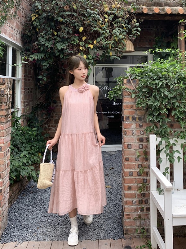 リゾートワンピース 大人可愛い 夏 ロングワンピース 花付き リゾートワンピ キャミソール マキシワンピース ハワイ ハワイアン 沖縄 体型カバー 結婚式 七五三 成人式 卒業式 入学式 Aライン 春夏おうち 無地 マキシ丈 おしゃれ 韓国 ベージュ ピンク dd033l9l9lc