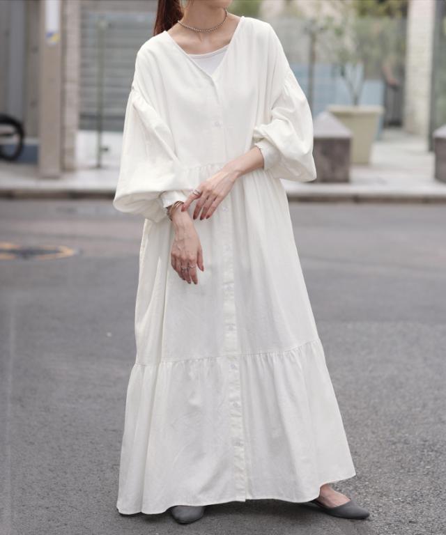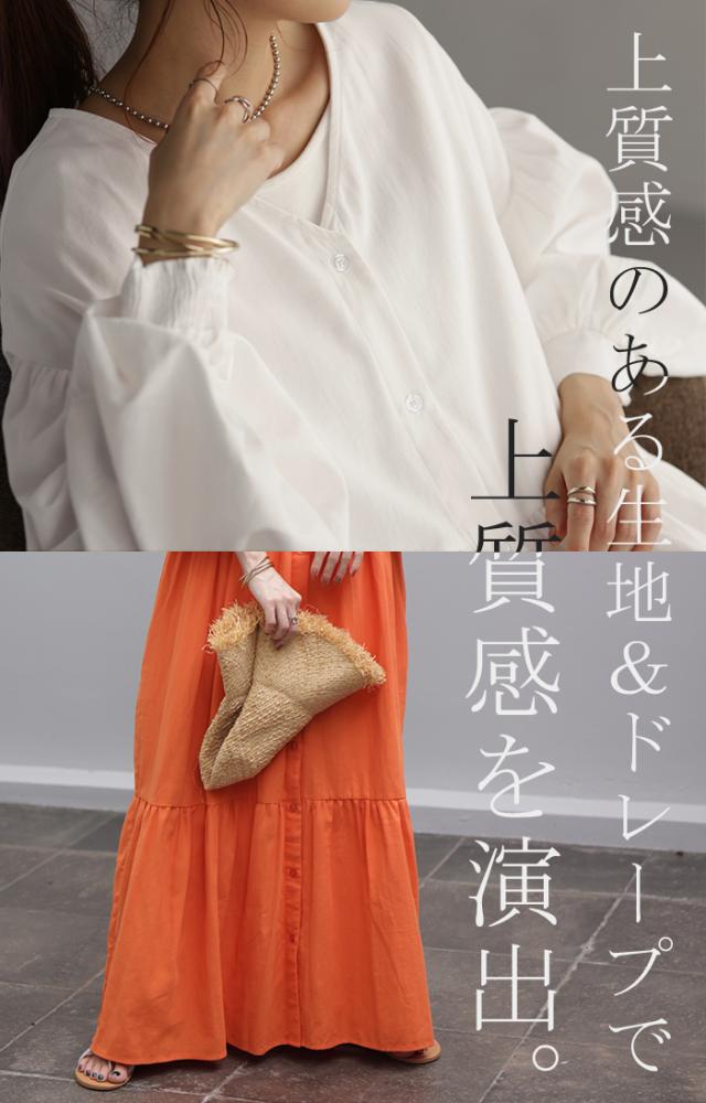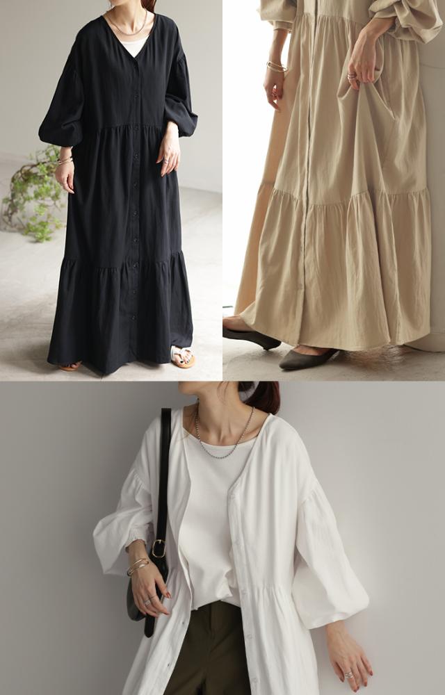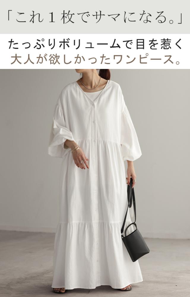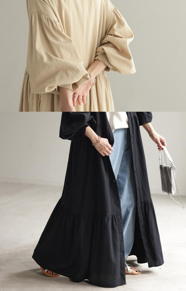 品のある程よい落ち感と、ふんわり感が大人っぽいティアードシャツワンピースです。
