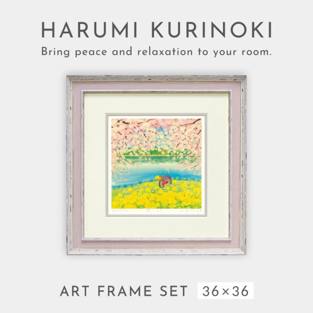 絵画 風景画 くりのきはるみ アートパネル 36×36cm 玄関 トイレ リビング 壁掛け 開運 風水 風景 春 菜の花 桜 自然 花 季節 アート フレーム付き 壁飾り インテリア おしゃれ 春うらら KH-10162