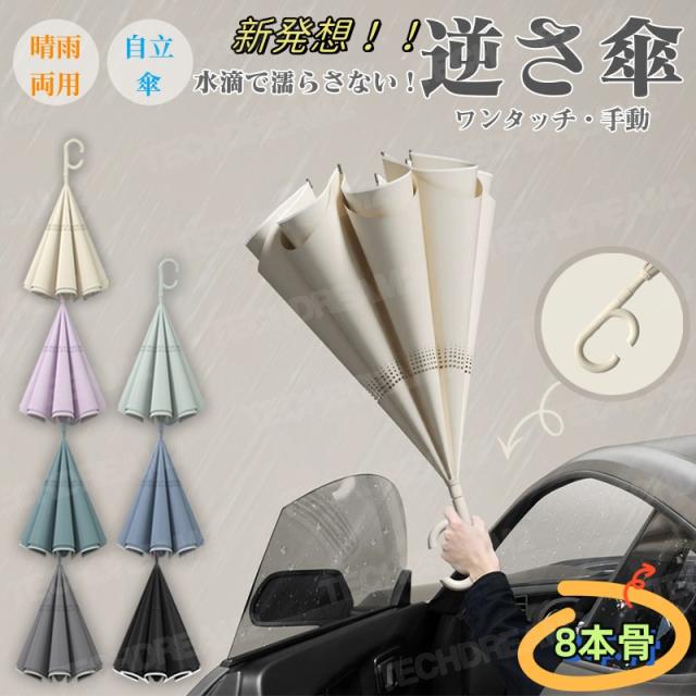 逆さ傘 日傘 自立傘 晴雨両用 逆開き 逆折り式傘 濡れない傘 逆転傘 長傘 8本骨 テフロン撥水 自動開き 逆さ傘 手動閉じ 雨の日 暑い日 男女兼用
