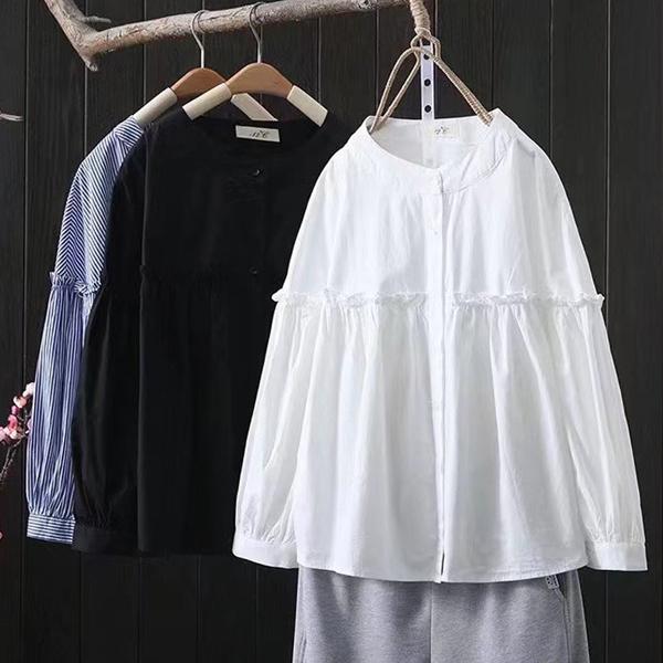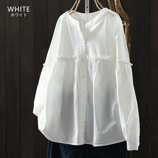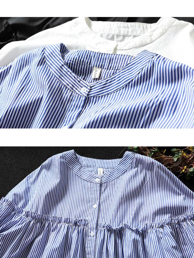 レディース トップス シャツ ブラウス チュニック 7分袖 七分袖 長袖 無地 ストライプ バンドカラー スタンドカラー ノーカラー ギャザー フリル フレア ボリューム袖 ボリュームスリーブ パフスリーブ ゆったり 体型カバー シンプル おしゃれ カジュアル ナチュラル きれいめ 大人 女性 ママ ママコーデ 春 夏 春服 夏服 白 黒 青 ホワイト ブラック ブルー ネイビー コットン 綿 ポリエステル フリーサイズ 人気 おすすめ 送料無料