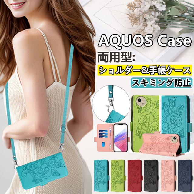 aquos sense9 SH-53E SHG14 ケース 蝶々 型押し 手帳型 アクオス ウッシュ5 sense10 wish4 wish5 R10 SH-52E R9 ショルダー 手帳ケース かわいい 花と蝶 シャープ 携帯ケース AQUOS wish4 ケース バタフライ カード入れ きれい ハンド ストラップ付き