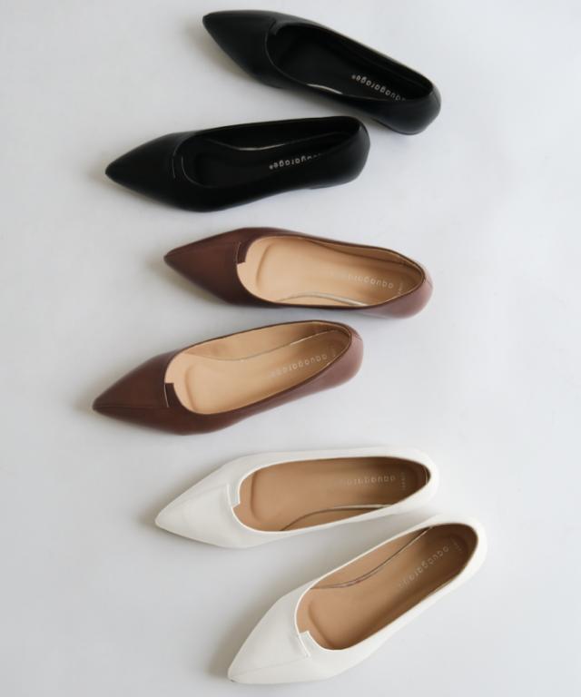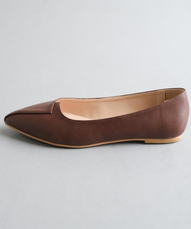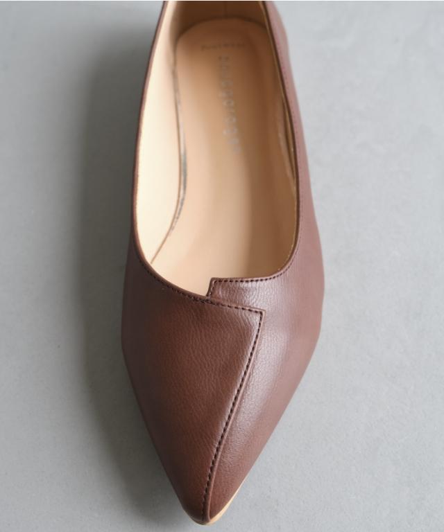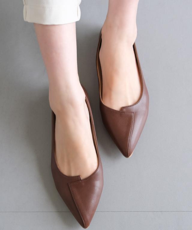 切り替えデザインがポイントのフラットパンプス