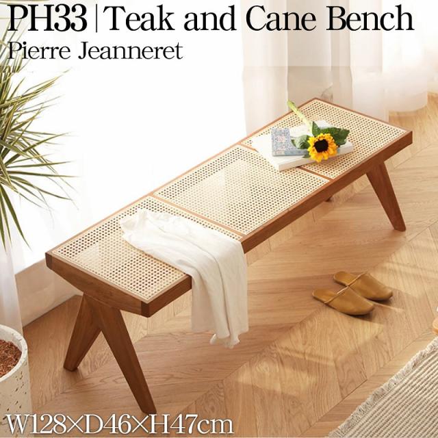 ラタンベンチ 籐編み ラタンチェア 北欧 チークベンチ ジャンヌレ 組み立て ダイニングベンチ 椅子 ローチェア 木製 椅子 幅128cm おしゃれ PH33BR