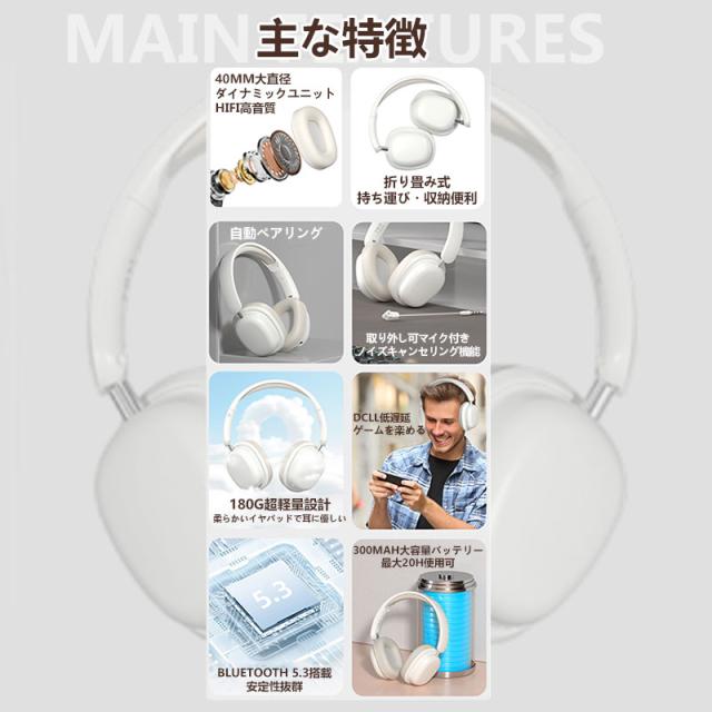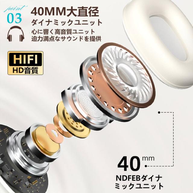 ワイヤレスヘッドホン Bluetooth5.3 クリア通話 HiFi高音質 ステレオサウンド 日本語説明書 即納