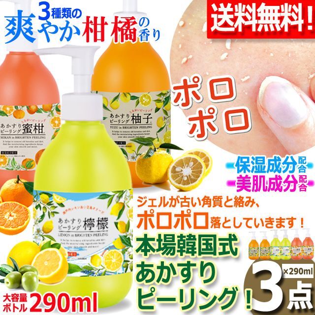 3点 韓国式あかすり ピーリング 角質 風呂 シャワー 柑橘 保湿 美肌 白肌 (保湿成分配合あかすりピーリングジェル 3点)レモン 柚子 みかん