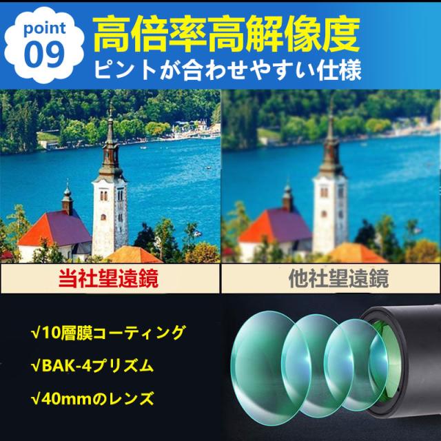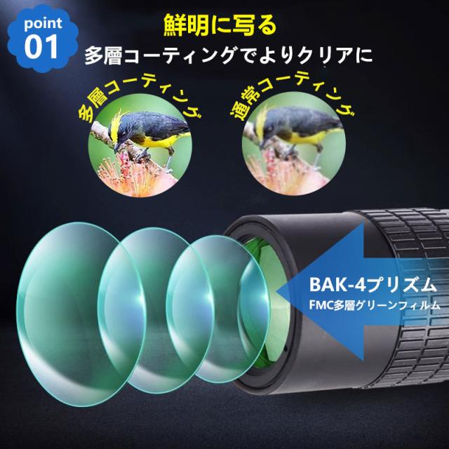単眼鏡 高倍率 ナイトビジョン 屈折率の高いBAK4プリズムを採用し、