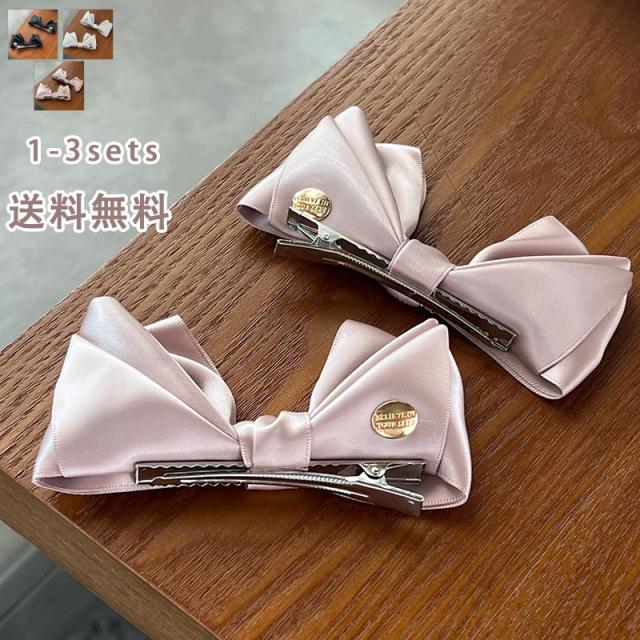 ヘアクリップ 2個セット くりばしクリップ 髪留め レディース 女性用 ヘアアクセサリー レザー調 リボン 蝶結び エレガント ヘアアレンジ 上品 清楚