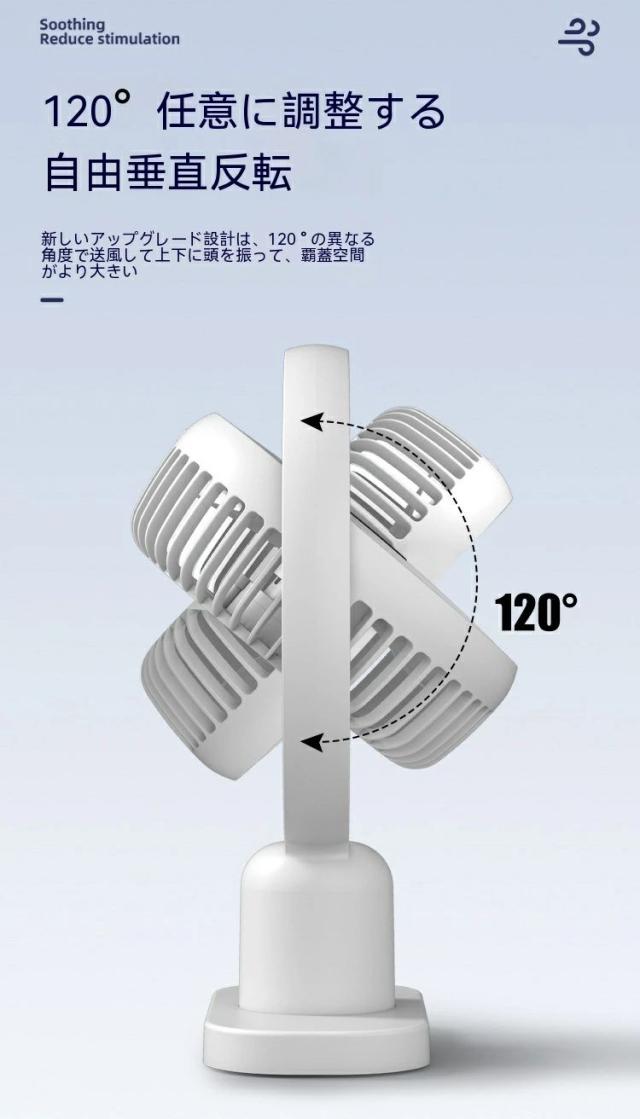 【静音&回転】この扇風機は、仕事や休憩時に強力かつ静かな涼風を提供します。この小型卓上扇風機は、120度の回転で風を好きな場所に向けることができ、風は上下左右に簡単に流れ、どこにいても涼しく快適に過ごせます。