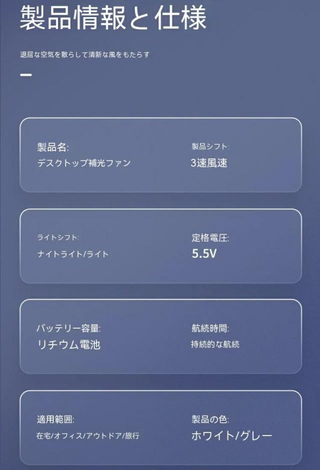 【USB電源の利便性】小型卓上扇風機には、あらゆるUSBポートに対応するUSBケーブルが付属しています。PC / ノートパソコン、モバイル電源、ACアダプター、車用充電器など、幅広いデバイスに対応しています。(注意:この扇風機はバッテリー式ではありません)
