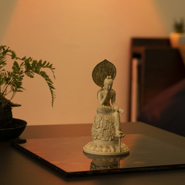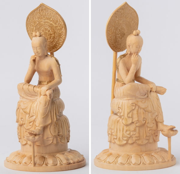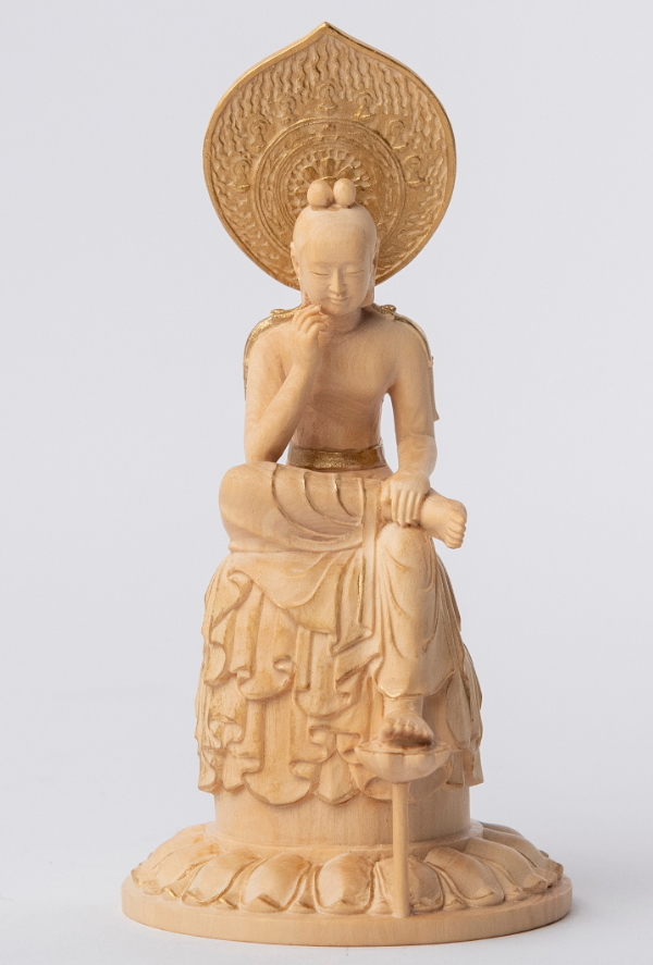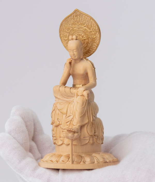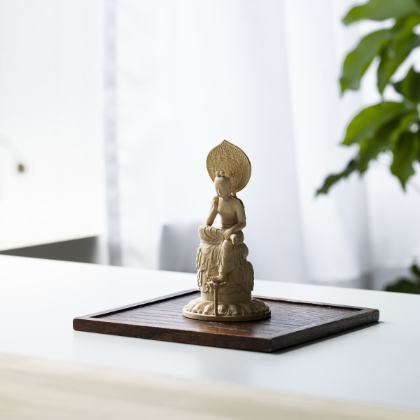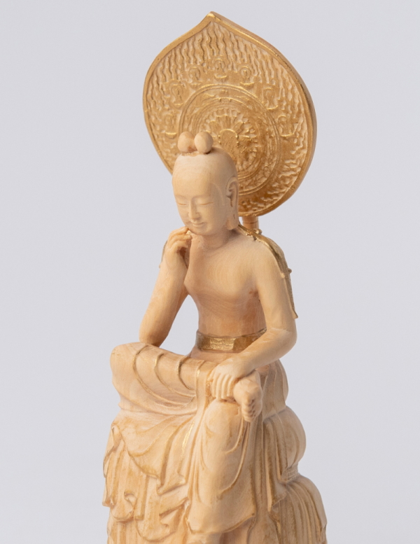 慈愛に満ちた珠玉のご尊顔!国宝「菩薩半跏像」がモデル。聖徳太子が建立したという日本最古の尼寺の本尊で、古くは弥勒菩薩と呼ばれていたが、現在は如意輪観音の名で信仰される。その微笑みは世界三大微笑の一つに挙げられるほどに魅力的なもので見る者の心を魅了しています。【サイズ(約)】高さ118mm×幅60mm×奥行60mm【重量(約)】68g【素材】ツゲ【商品についてのご注意】●商品写真は実際の商品の中から無作為に選んだものを撮影しております。●商品は一体一体手作業で仕上げを行っており、高レベルな均一化を図っておりますが、まったく同一の商品はございません。また、木目や表情などが一体、一体異なります。●表示寸法と実際とは若干誤差が生じる場合がございます。●商品はWEB画面上と、実際の色と異なる場合がございます。