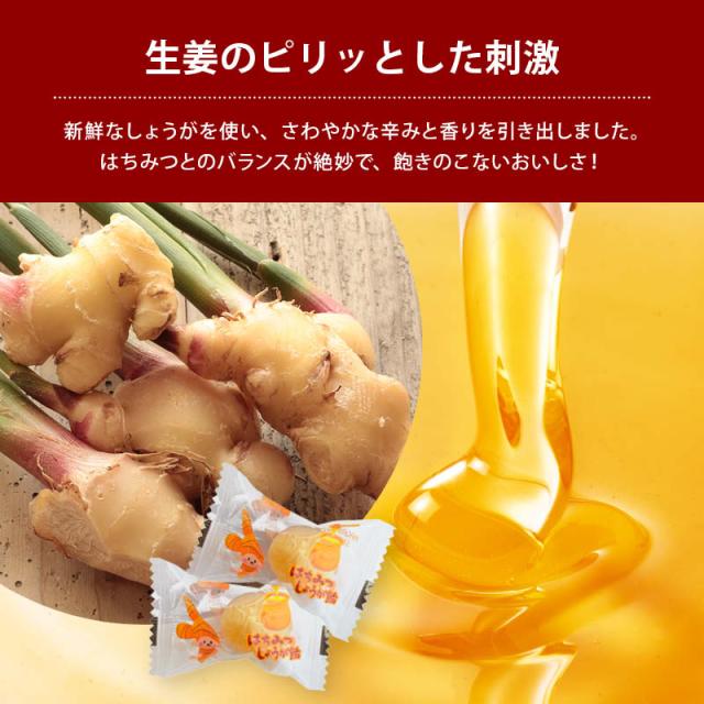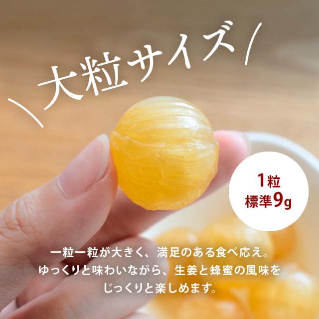 ◆商品説明:しょうがのピリッとした刺激とはちみつの優しい甘さで食べ応えがある大粒サイズ!