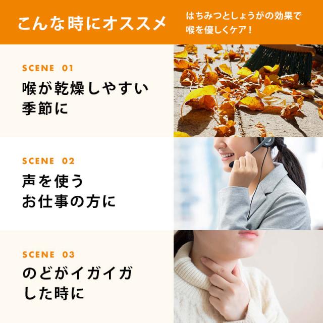 ゆっくりと味わいながら、生姜と蜂蜜の風味をじっくりと楽しめます。無添加で便利な個包装です。