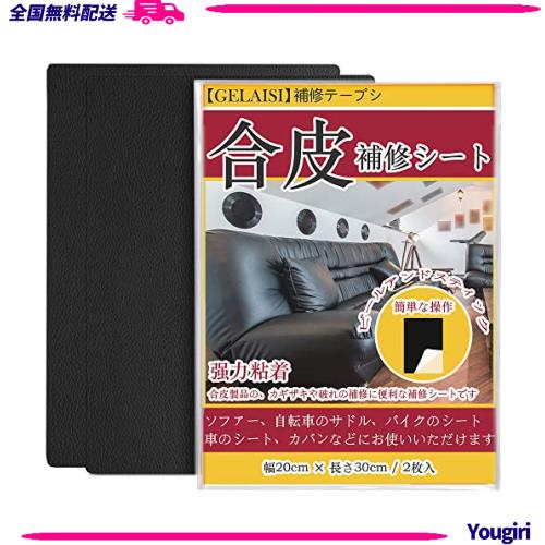合皮補修シート20*30cm ソファー補修テープシールタイプ カバン 椅子 バイク シート財布家具革補修(2個セットA4サイズブラック)