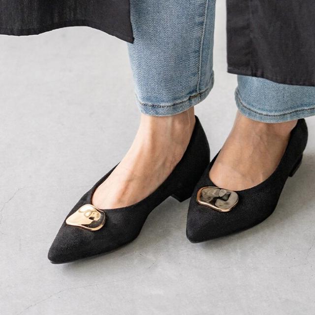 ポインテッドトゥ オーナメント ローヒール パンプス [ menue メヌエ ]