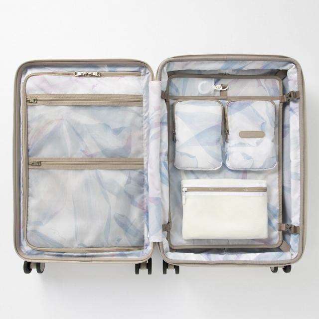 充実の機能性とパール入りの繊細なカラー、素敵な内装グラフィックで、女性の出張時のきちんと服にも浮かず「無機質なのはいやだけど、可愛すぎてもお仕事使いしにくい」といった女性のお悩みに応えるデザインに仕上げました。