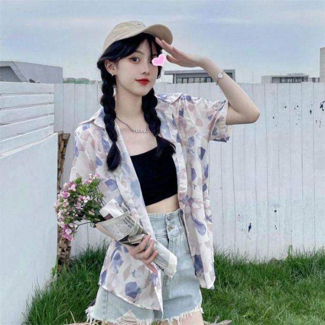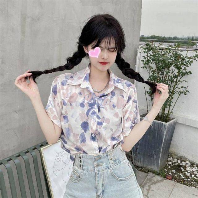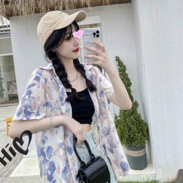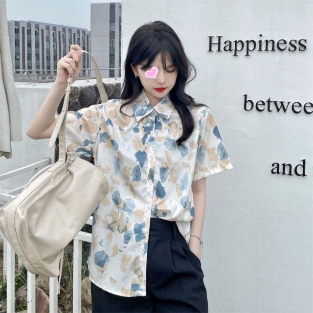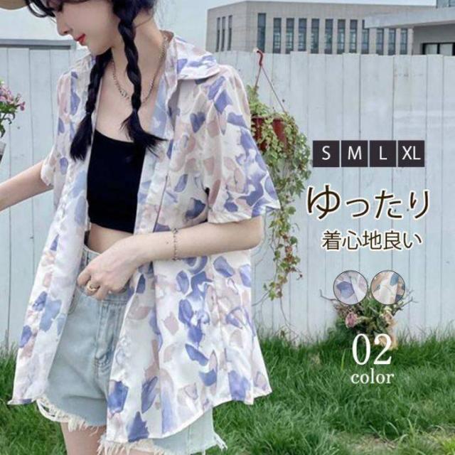 ブラウスシャツ レディース シャツ ブラウス 半袖 前開き トップス 花柄 チュニック カジュアル シンプル おしゃれ 薄手 ゆったり 夏 アウトドア
