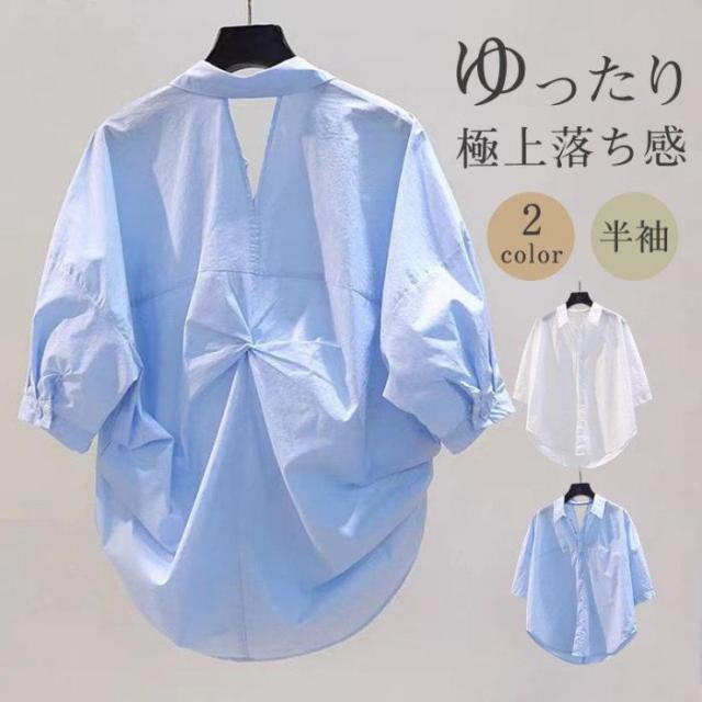 セール ブラウス 半袖 レディース シャツ トップス 切替 カットソー 重ね着 流行り 通勤 春夏 Tシャツ 柔らかい チュニック ふわっと?