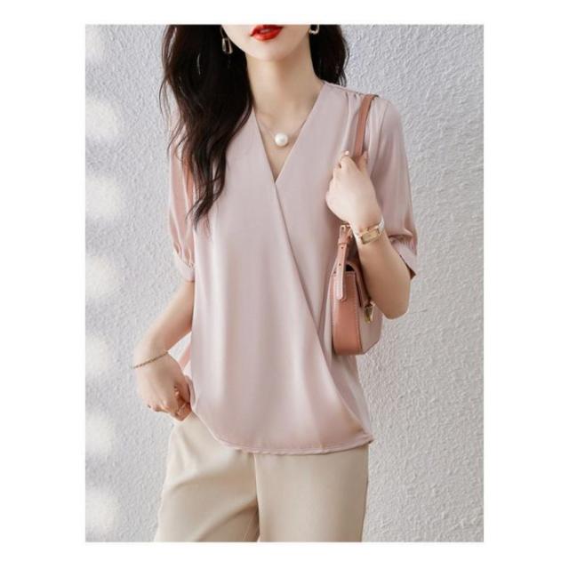 激安 ブラウス 半袖 レディース シャツ トップス 切替 おしゃれ カットソー 重ね着 流行り 夏 Tシャツ 柔らかい チュニック ゆったり