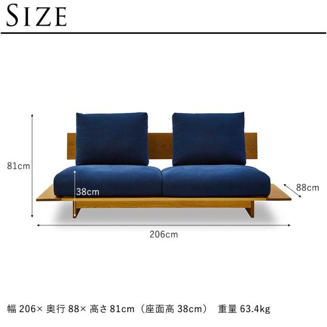 サイズ/重さ:幅206×奥行88×高さ81cm 座面高38cm 重量63.4kg