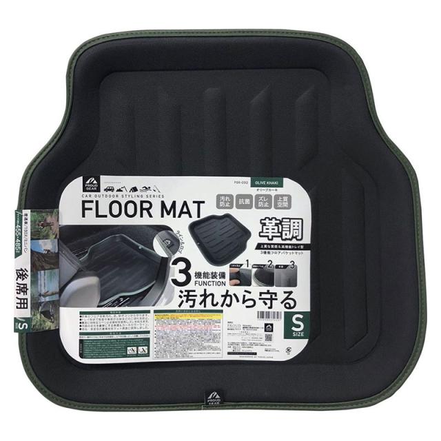 フロアマット 革調 オリーブカーキ 後席用 レザー調バケットマット Sサイズ 455×485mm 軽・普通車/1BOX/ミニバン プラウドギア PGR-032