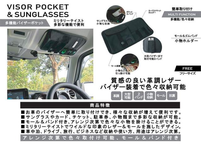 ●お車のバイザーへ簡単に取り付けでき、様々な収納が増えて便利です