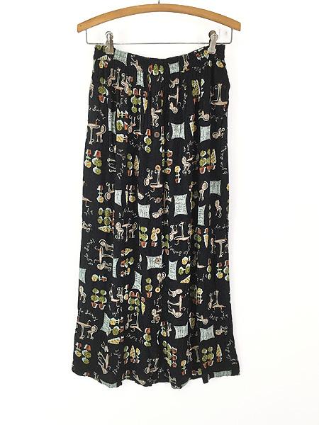 レディース 古着 CAROLE LITTLE カフェ メニュー 総柄 レーヨン 楊柳 フレア スカート マキシ丈 S 古着