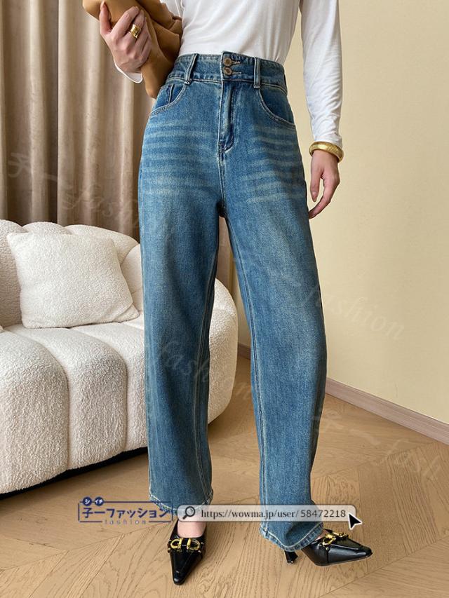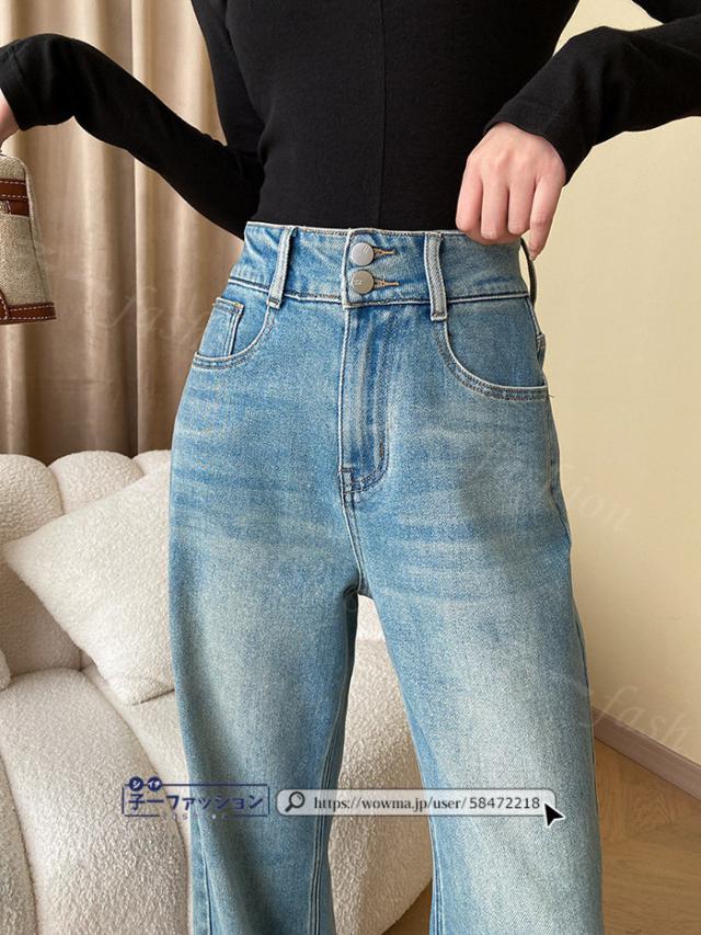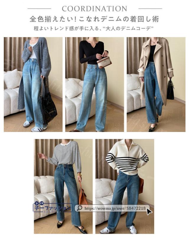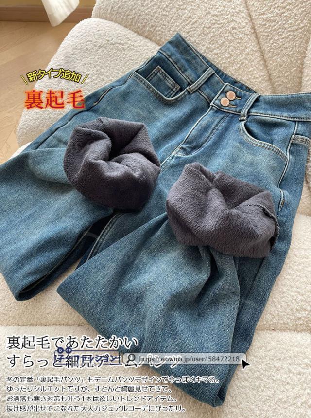ワイドパンツ デニムパンツ ハイウエスト 冬新作 新作 パンツ ボトムス 2タイプ 裏起毛あり 裏起毛なし 長ズボン ロング ポケットレディース ジーンズ ジーパン 美脚 脚長効果 ゆったり 体系カバー シンプル ストレッチ 伸縮性 秋冬 バレンタイン