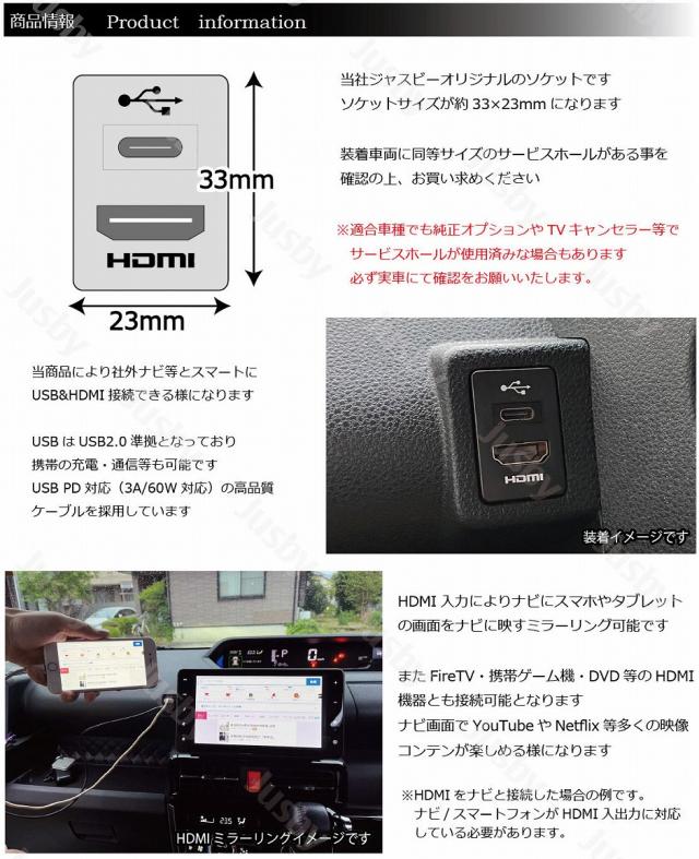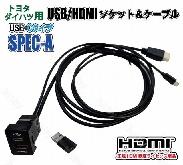トヨタ ダイハツ USB HDMI ソケット USB タイプC SPEC A (33×23mm) アダプタ スペアスイッチホール カーナビとの接続 ミラーリング HDMI入力 USB TypeC