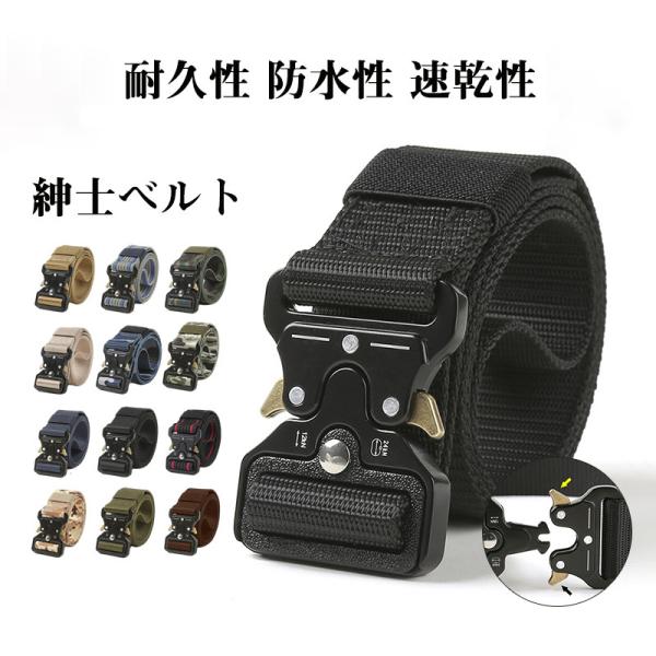 ベルト メンズ 穴なし 品質保証 アメカジ タクティカル ベルト サバイバル ガンベルト 迷彩 サバゲー ナイロン ワンタッチ ミリタリー アウトドア