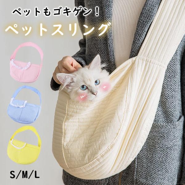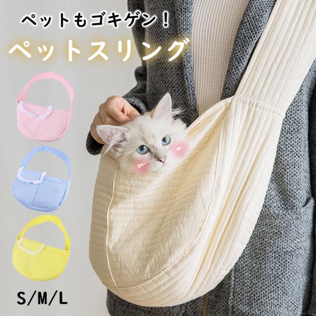 ペットスリング 犬 猫 抱っこ紐 キャリーバッグ ドッグスリング 小型犬 お出掛け お散歩 無地 一部即納 飛び出し防止 ポケット付き 持ち運び 折りたたみ