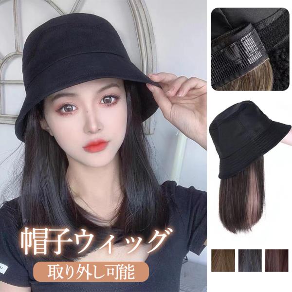 帽子ウィッグ 女性 ウィッグ ショート ミディアム かぶるだけ 一体式 ロング 襟足ウィッグ 自然 フルウィッグ 可愛い 小顔効果 日焼け防止 取り外し可