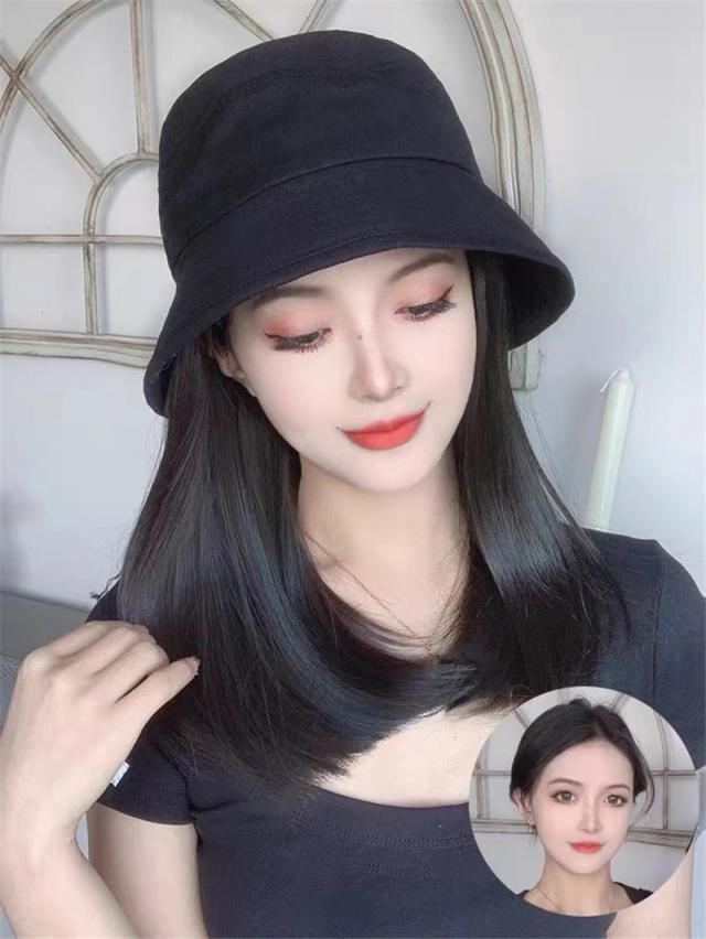 ウィッグ かぶるだけ ロング 日常用 帽子用ウィッグ ウィッグ 髪付き帽子 前髪 白髪 バケットハット 毛付き 3D構造 レディース ショートヘア 一体式 コスプレ ウィッグ付き帽子 旅行用:
