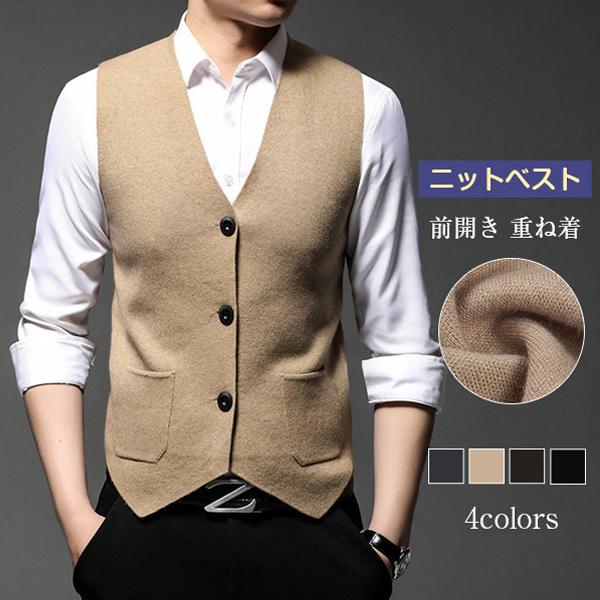 ニットベスト メンズ 秋 チョッキ アウター 前開き カーディガン ビジネス 無地 通勤 コーデ シンプル 重ね着 着心地 おしゃれ ファッション