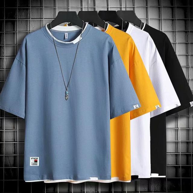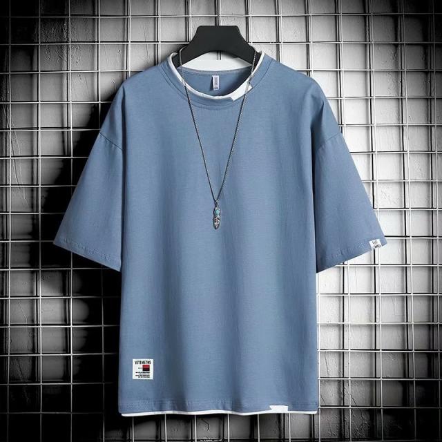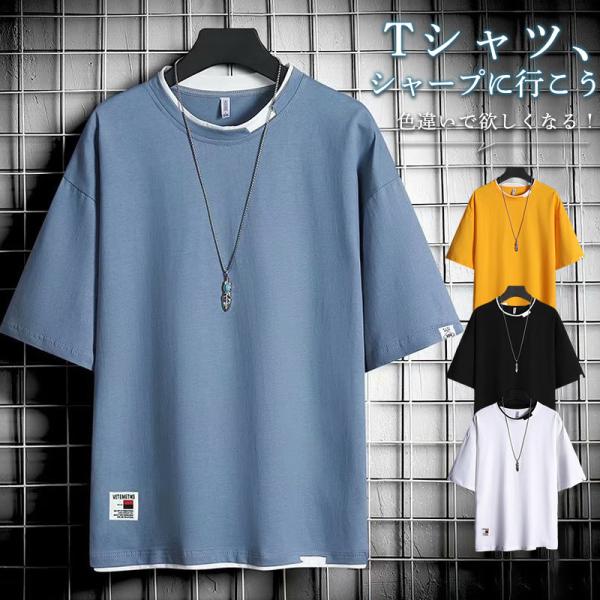 tシャツ 半袖 メンズ 夏 トップス 無地 薄手 重ね着風 吸汗 切り替え クルーネック スポーツ 速乾 カジュアル 父の日 おしゃれ ファッション 涼しい 大きサイズ