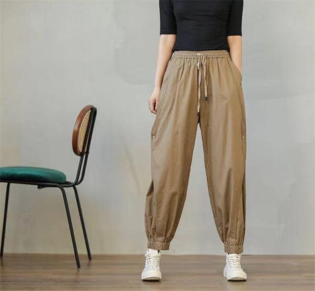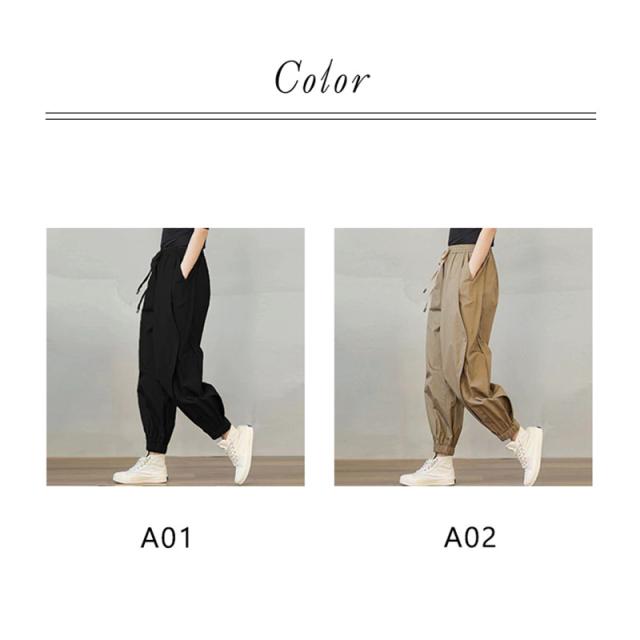カーゴパンツ ジョガーパンツ レディース 夏 薄手 サルエルパンツ ロングパンツ ウエストゴム 一部即納 裾ゴム 通気性 春 秋 ボトムス 無地 通学 部屋着