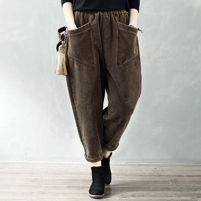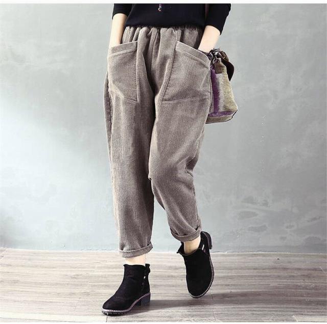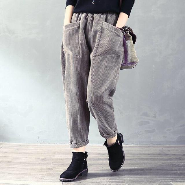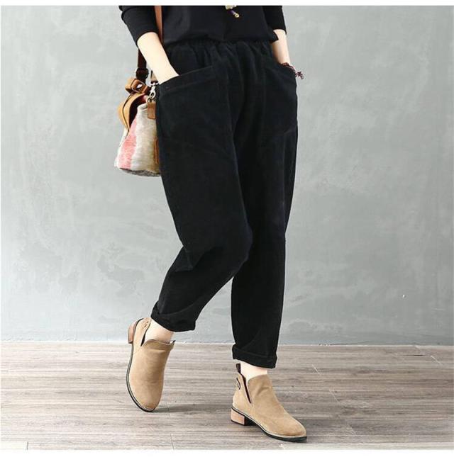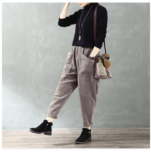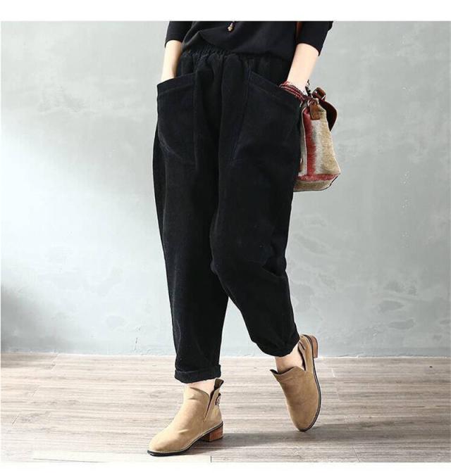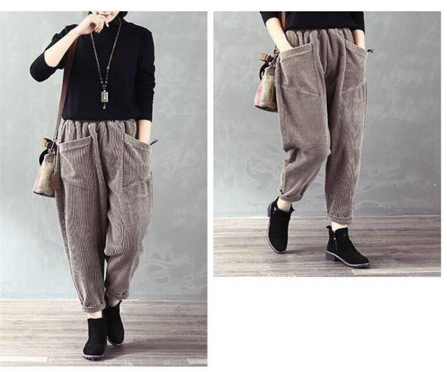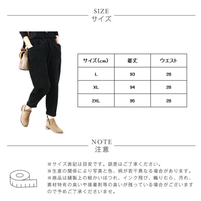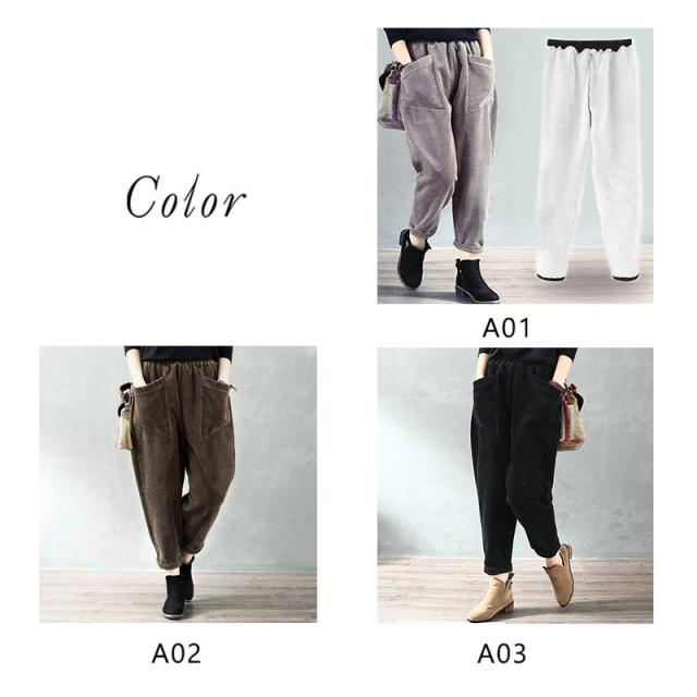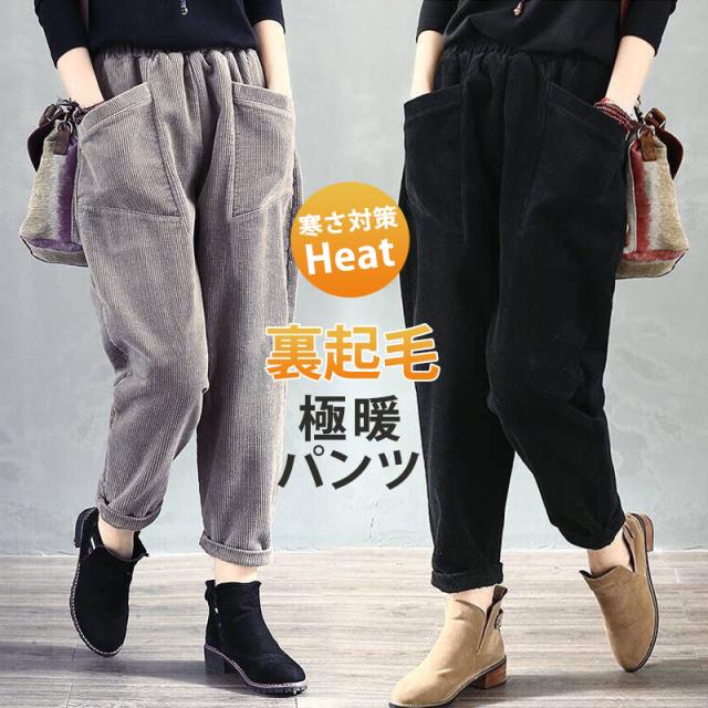 サルエルパンツ レディース 裏起毛 ワイドパンツ コーデュロイ テーパードパンツ 厚手 あったか ウェストゴム ポケット付 秋冬 防寒 保温 ボトムス