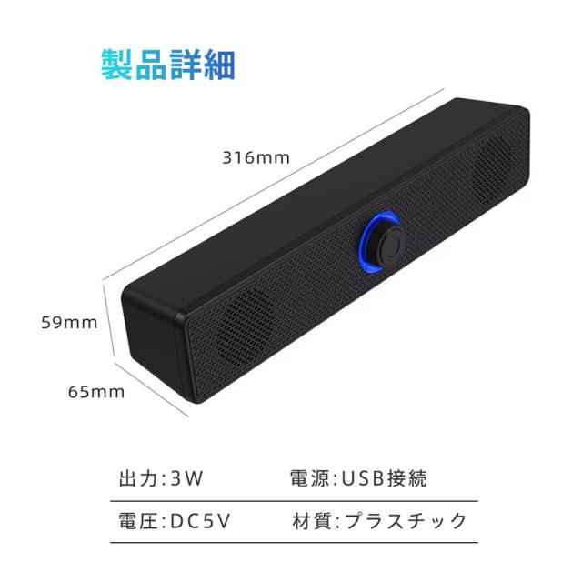 PCスピーカー usb接続 有線 高音質 小型 スピーカー パソコンスピーカー 大音量 LEDライト付き コンパクト スマホ対応 自宅 アウトドア