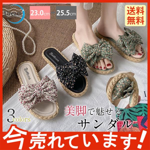 ミュールサンダル レディース サマーシューズ 韓国風 フラットサンダル リボンサンダル 可愛い 夏サンダル リゾートサンダル 疲れにくい 美脚シューズ