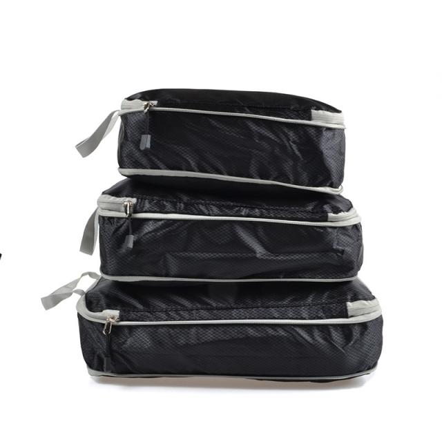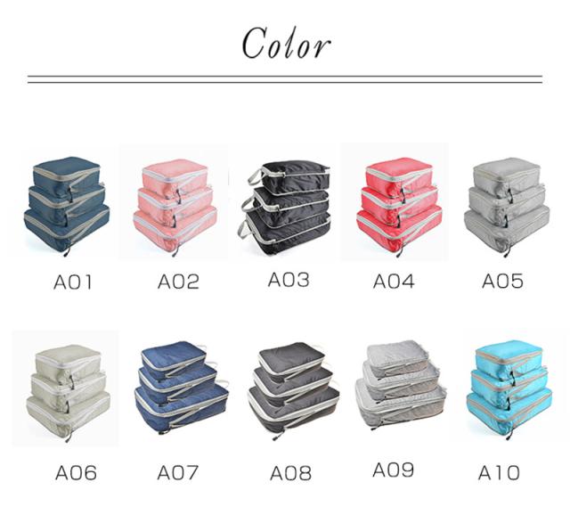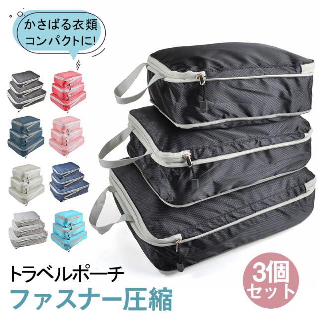 旅行用圧縮袋 トラベルポーチ 圧縮バッグ 収納ポーチ ファスナー 3個セット 衣類圧縮袋 バッグインバッグ 防水 大容量 出張 旅行 荷物 軽量