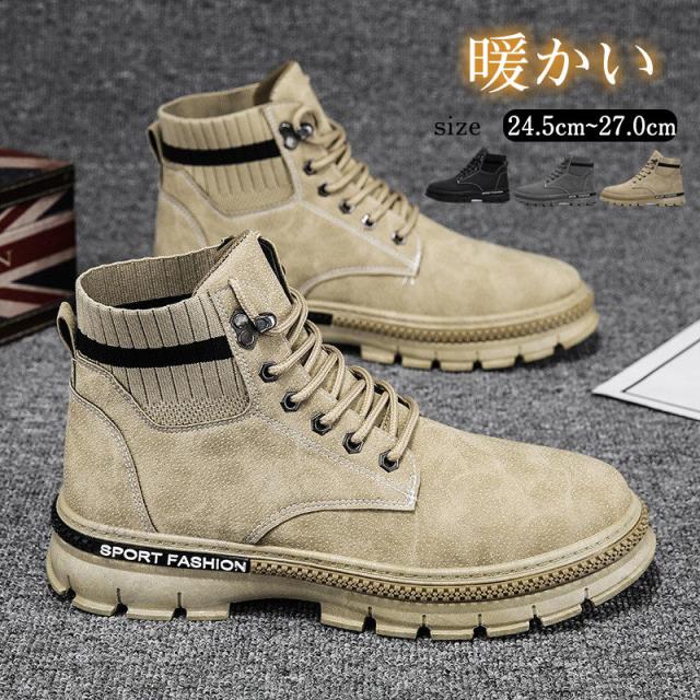 スノーブーツ スノーシューズ メンズ ショートブーツ 秋冬 暖かい 裏起毛 シューズ 防寒靴 カジュアル 雪靴 エンジニアブーツ ムートンブーツ