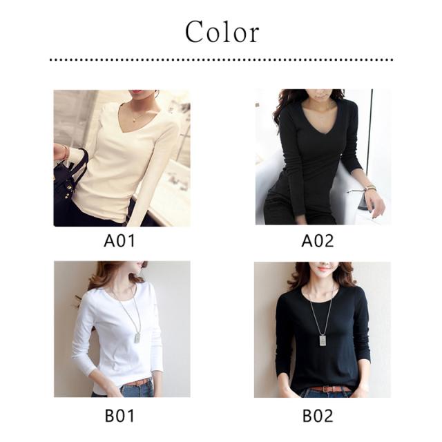 Tシャツ カットソー 長袖 レディース tシャツ 丸首 トップス スリム インナー 無地 カジュアル 普段着 春 秋 冬 大きいサイズ