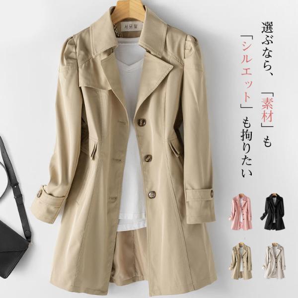 トレンチコート レディース ライトコート 春 秋冬 ミドル丈 アウター 大きいサイズ 通勤 上品 カジュアル 卒業式 服 母 長袖 おしゃれ