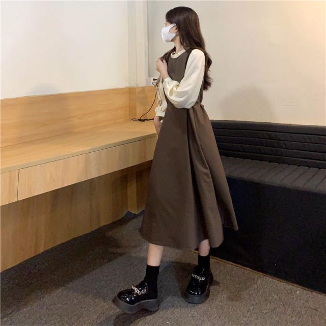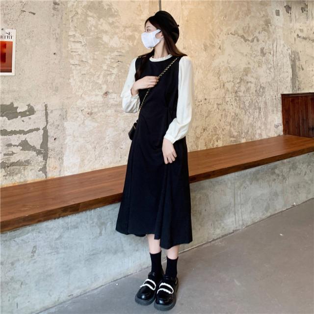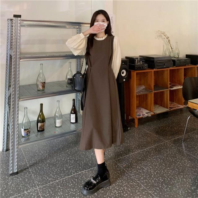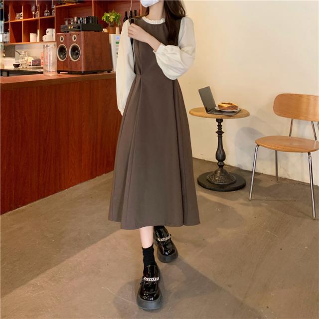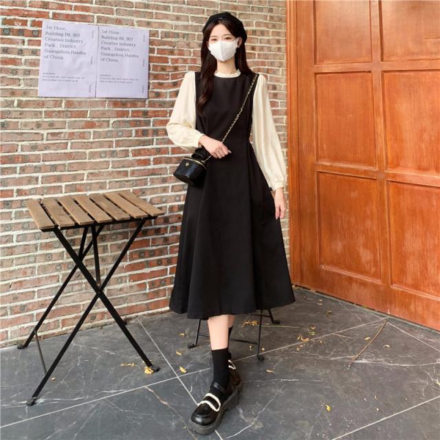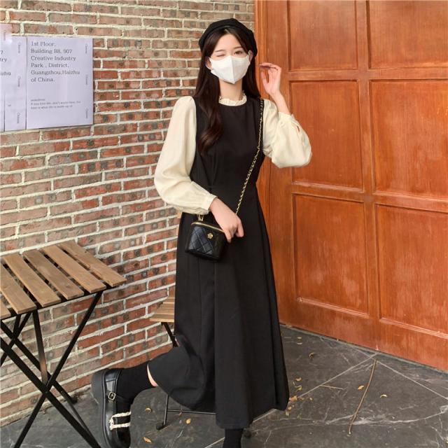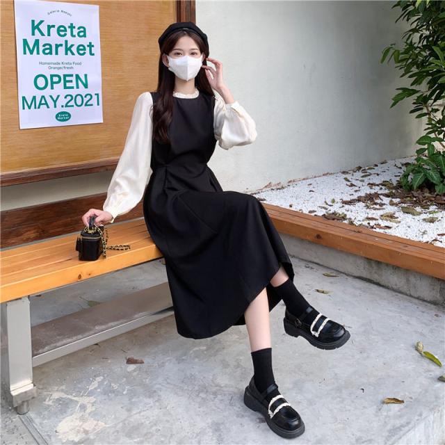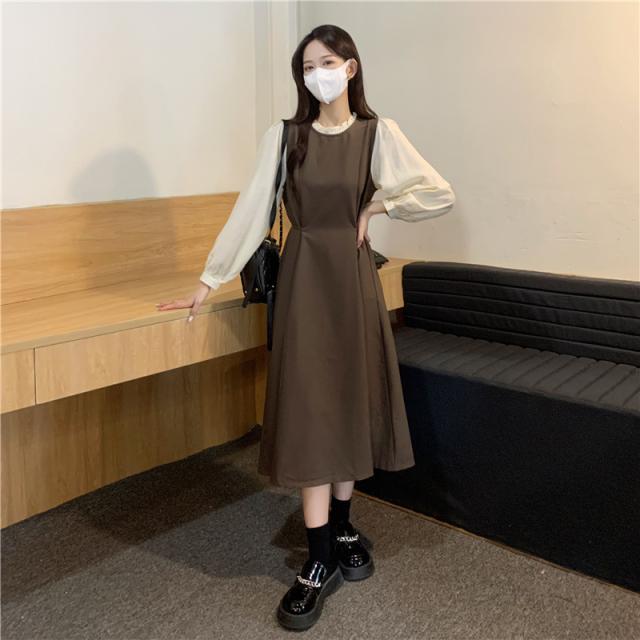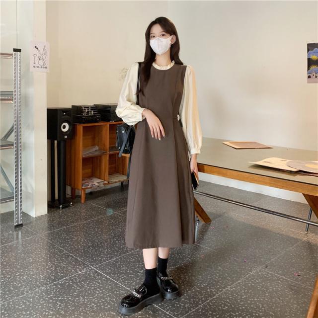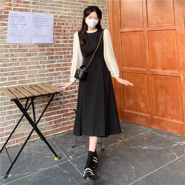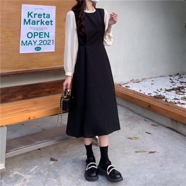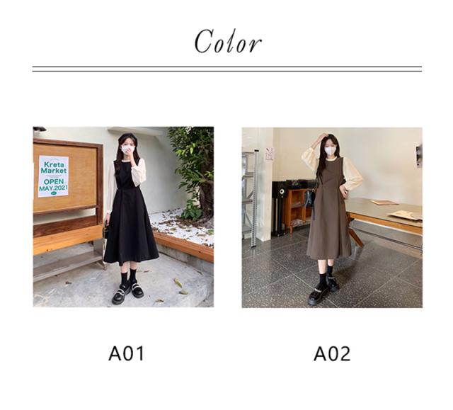 ワンピース レディース 異素材 長袖 ドッキングワンピース 高級感 魅せる ギフト プレゼント 韓国風 細身効果 体型カバー ゆったり 大人