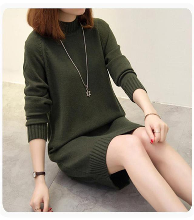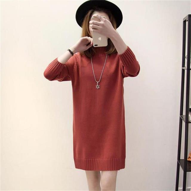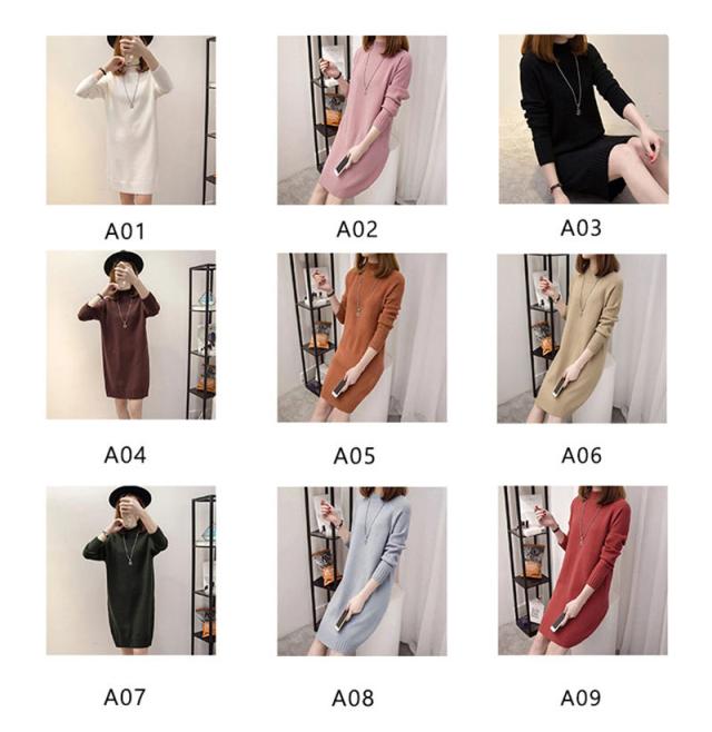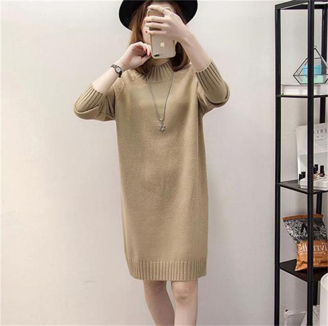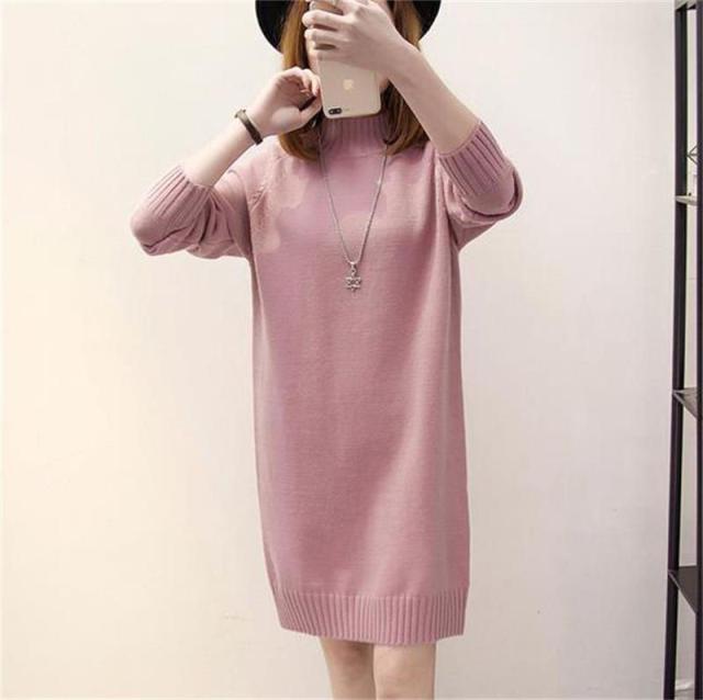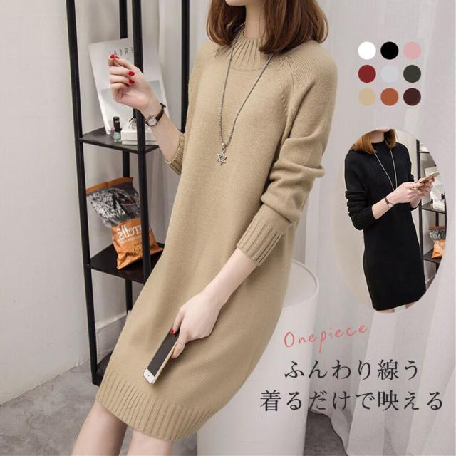 ワンピース レディース ニットワンピース 膝丈 長袖 ニット チュニック ロングセーター トップス 秋冬 着痩せ ゆったり ハイネック おしゃれ