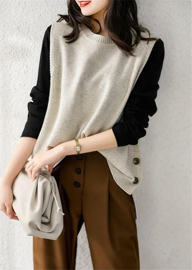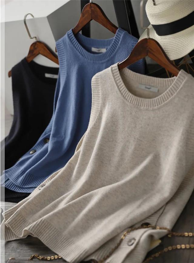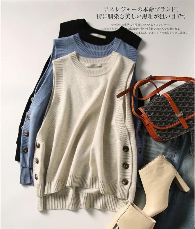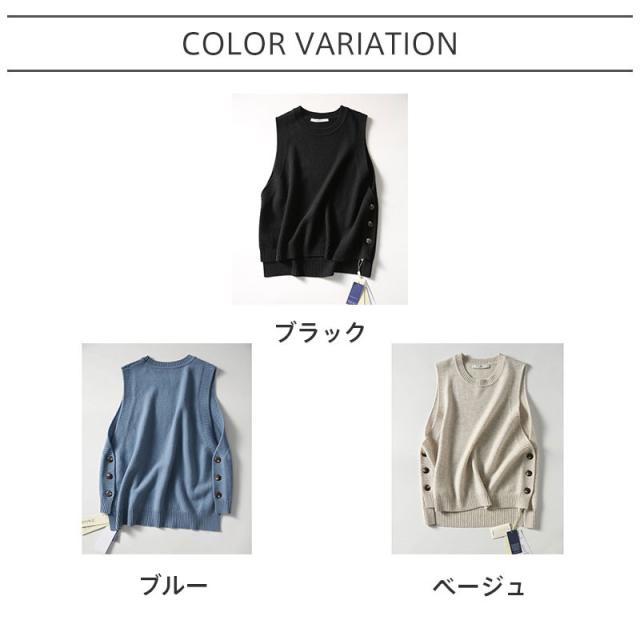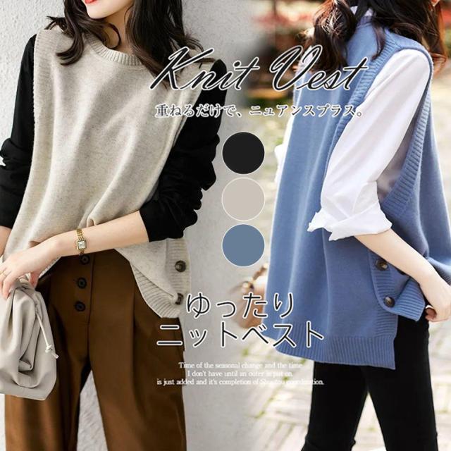超激安!!ニット トベスト レディース チョッキ タンクトップ トップス 秋コーデ カジュアル セーター 一部即納 ボタン飾り ゆったり 着痩せ 体型カバー 春秋
