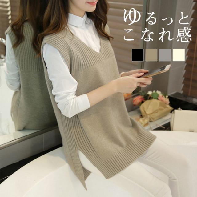 ニットベスト レディース 夏服 袖なし プルオーバー チョッキ トップス 着痩せ 無地 カジュアル 一部即納 ゆったり 夏 大人 女性 着回し vネック