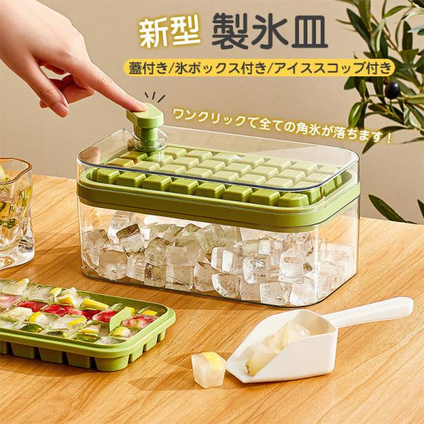2024新型 製氷皿 製氷機 蓋付き シリコン 大容量 2層 64個取り アイストレー 製氷器 収納ボックス おしゃれ 氷トレー 取り出しやすい 柔らかい 角氷 飲み物作り