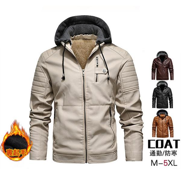 裏起毛 ライダースジャケット メンズ レザージャケット パーカー フード付き アウター 大人 防寒 秋冬 旅行 20代 30代 40代 50代
