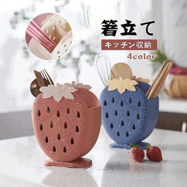 イチゴ型 箸スタンド 箸立て カトラリースタンド かわいい キッチン収納 速乾 調理器具収納 多機能 フォーク収納 大容量 水切り お洒落 食器収納